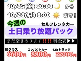 皆さん、こんにちは テラニシモータース株式会社です️ マンスリーレンタカーの料金を一部 値下げ致しました。 【変更前】 コンパクトカー 59,800円(65,780円) …